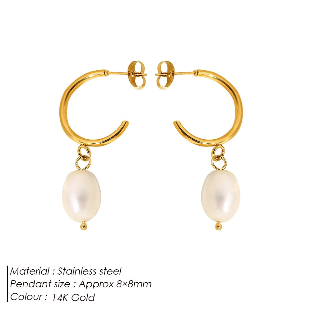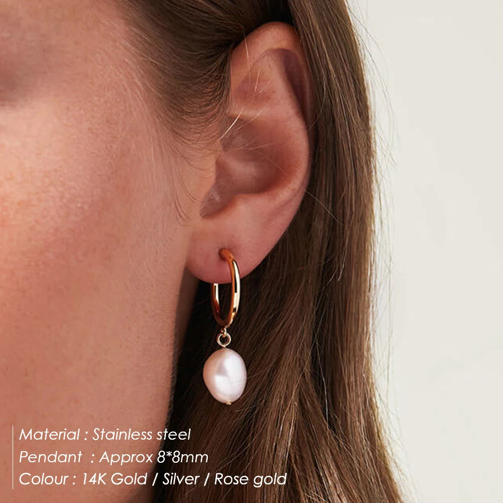 Modessie Fashion Natural Freshwater Pearl Pendant Earrings Large Hoop Stainless Steel Gold Color Earrings