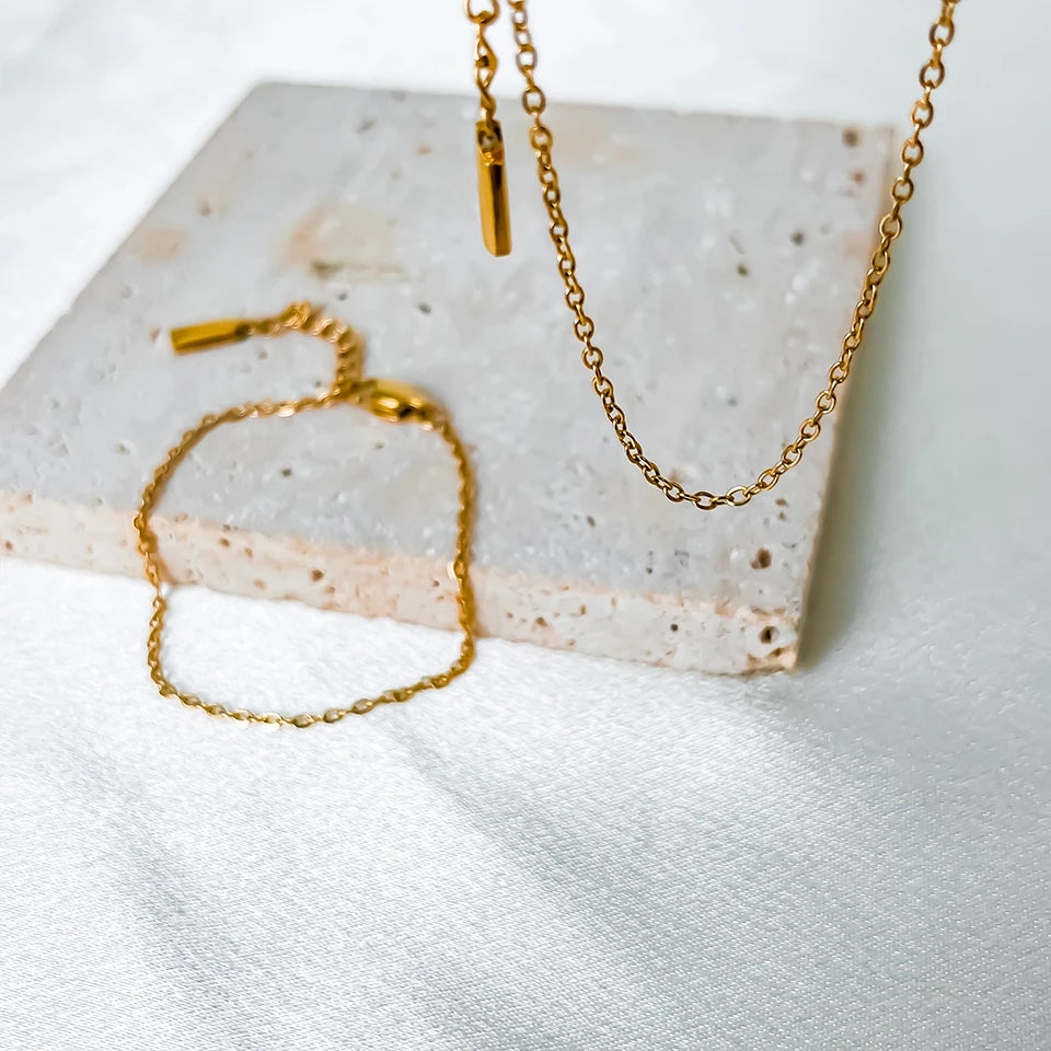 Crafted from premium gold-plated stainless steel, this Modessie fine chain anklet combines durability with elegant design. The upgraded lobster clasp ensures secure wear, while the adjustable length provides a customized fit. This classic piece elevates any outfit with its subtle shimmer and corrosion-resistant finish, making it suitable for both everyday wear and special occasions.