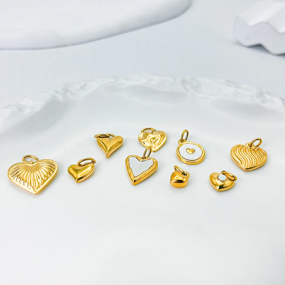 Modessie New Fashion Three-dimensional Tassel Heart Charm Pendant Stainless Steel Gold-Plated Necklace Homemade Accessories
