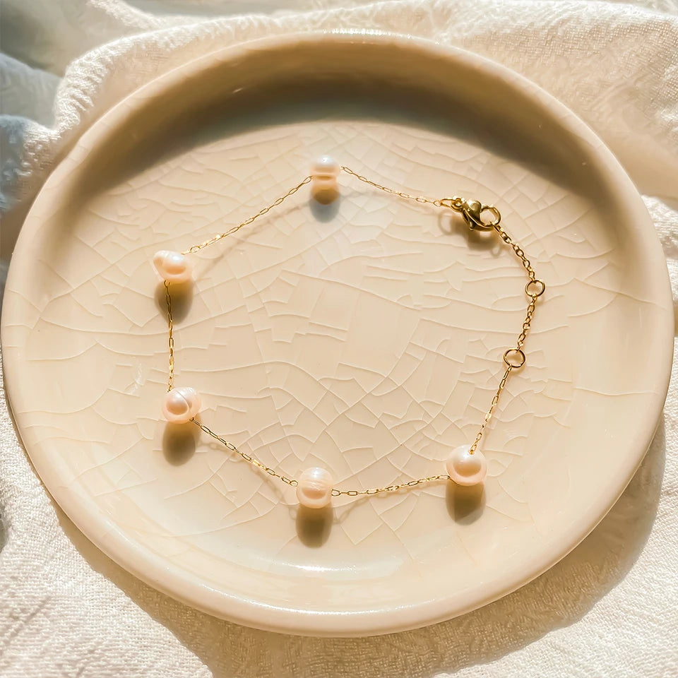 New Trend Dainty Vintage Stainless Steel Single Layer Chain Pearl Bracelet Modessie Summer Jewelry