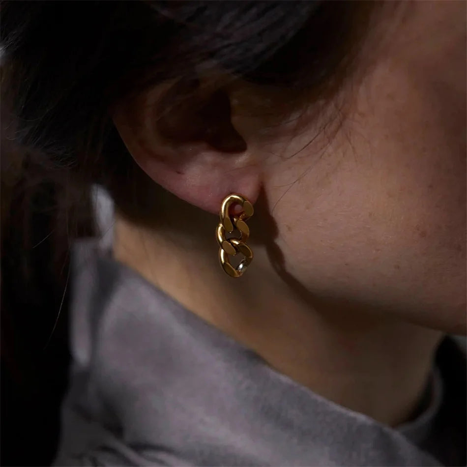 These Modessie Cuban Link Chain Stud Earrings combine timeless Cuban link design with modern elegance. Crafted with genuine gold or silver plating, they offer durability and a refined finish. The ring clasp adds a secure and stylish touch, while the dangle style enhances movement and visual interest. Perfect for fashion-forward women seeking versatile jewelry that complements both casual and formal looks.