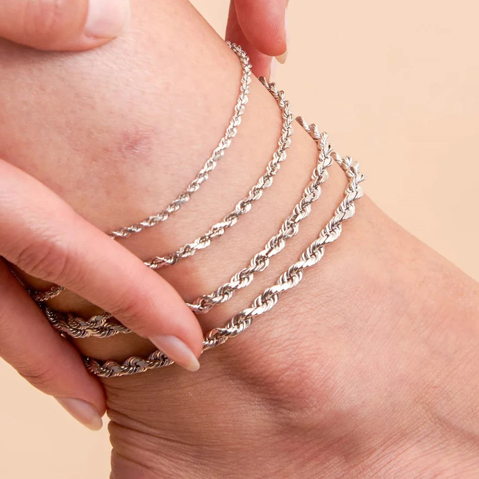 Modessie Silver Color Rope Chain Link Anklets Stainless Steel for Women Foot Accessorie Summer Beach Barefoot Sandals Bracelet